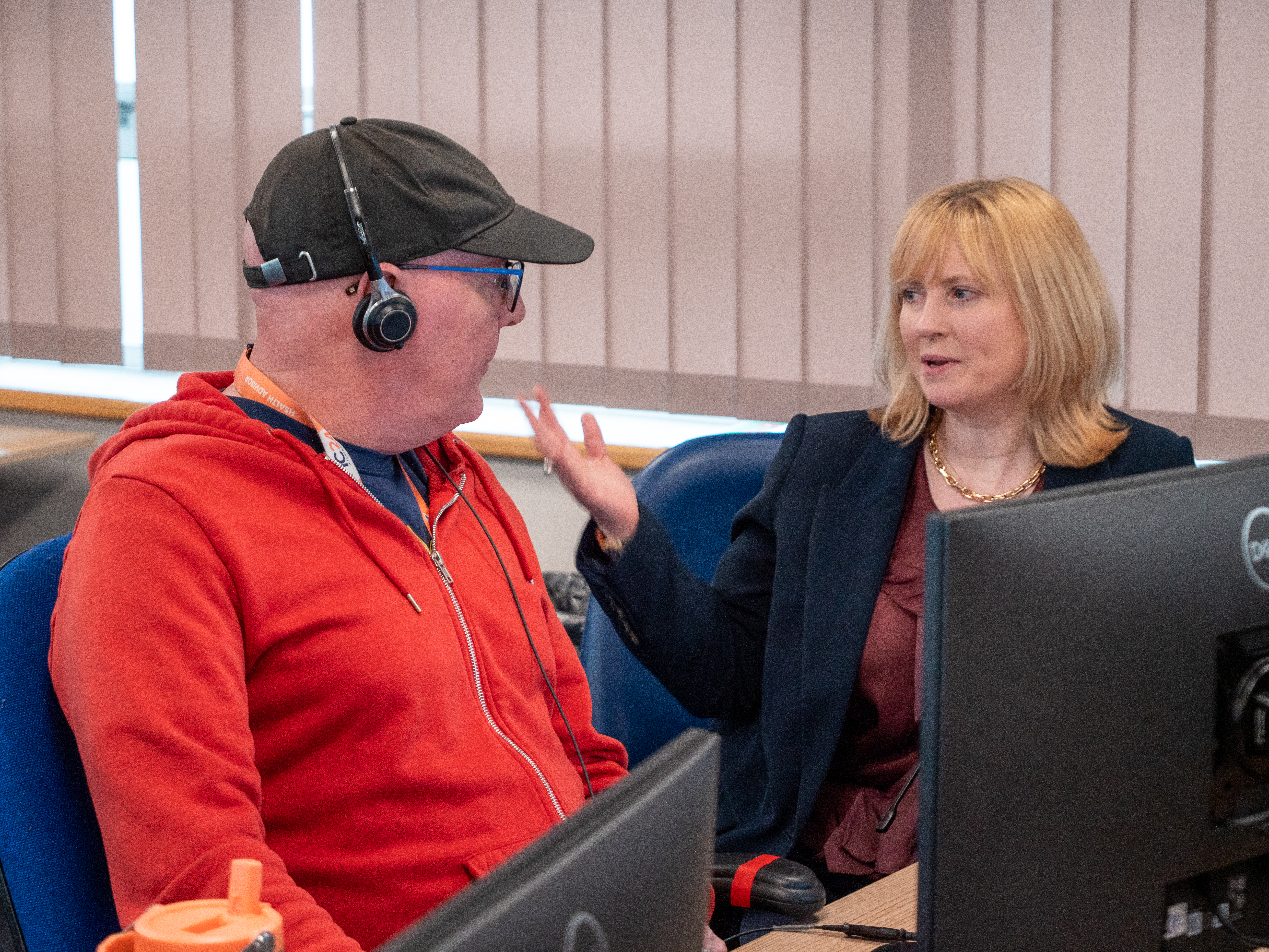 A highlight of the visit saw Rosie spending time in our contact centre, where she listened in on NHS 111 calls with one of our health advisors. This offered a real time glimpse into the compassionate and complex work our teams deliver every day to support patients. She also had the chance to speak with Team Manager Zoe Skinner, gaining further insight into how our services operate behind the scenes.